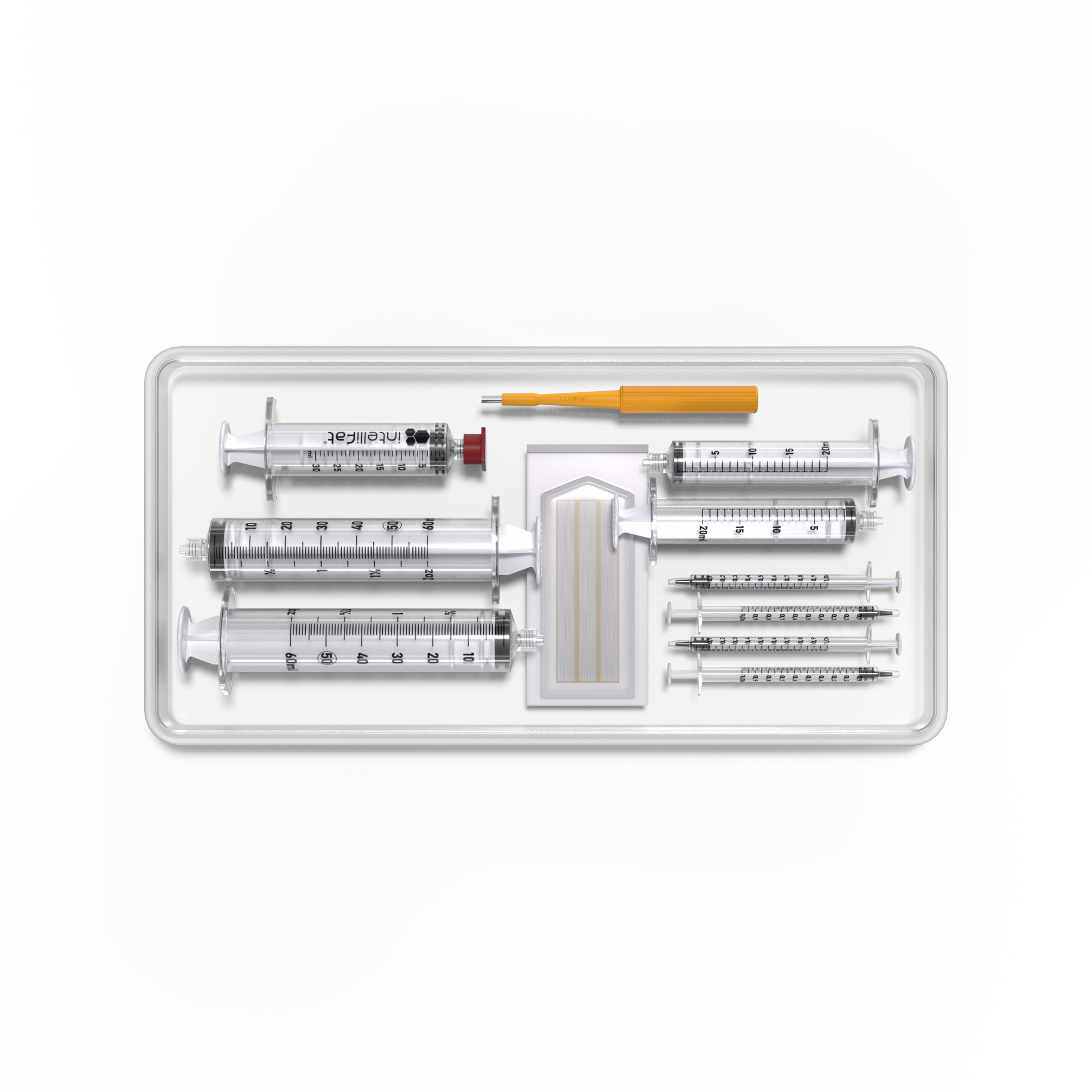 intelliFat® BOD™ features our new SuperG® Milli Plus harvester for a faster harvest via syringe and our new intelliHub™ making a sturdier and more secure luer connection.